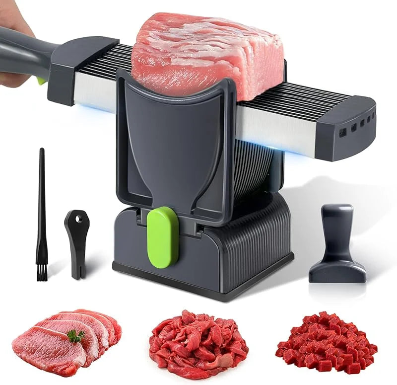 Simplifiez la préparation de vos viandes avec le coupe-viande manuel de cuisine, l’outil idéal pour trancher la viande en fines lamelles en quelques secondes — sans effort et sans danger ! 🔪✨
